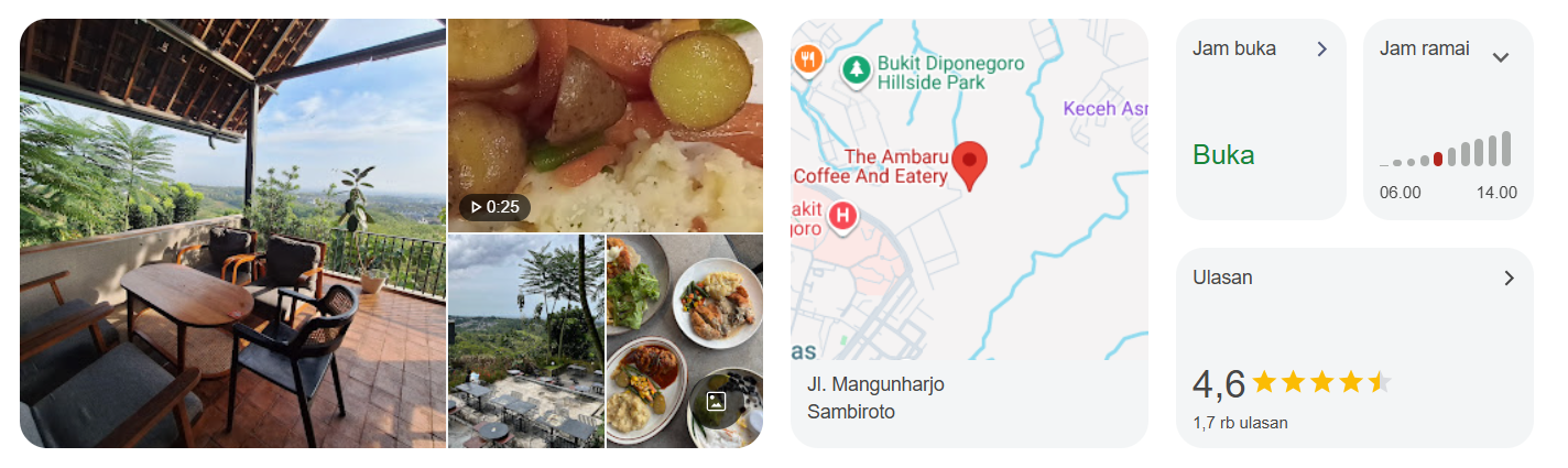 Kalau kamu ingin bukber yang berkesan dan estetik, The Ambaru Coffee and Eatery adalah jawabannya. Kafe ini dikenal sebagai hidden gem dekat kampus UNDIP yang menawarkan pemandangan kota Semarang dari atas — sempurna untuk mengabadikan momen bukber bersama teman atau keluarga.