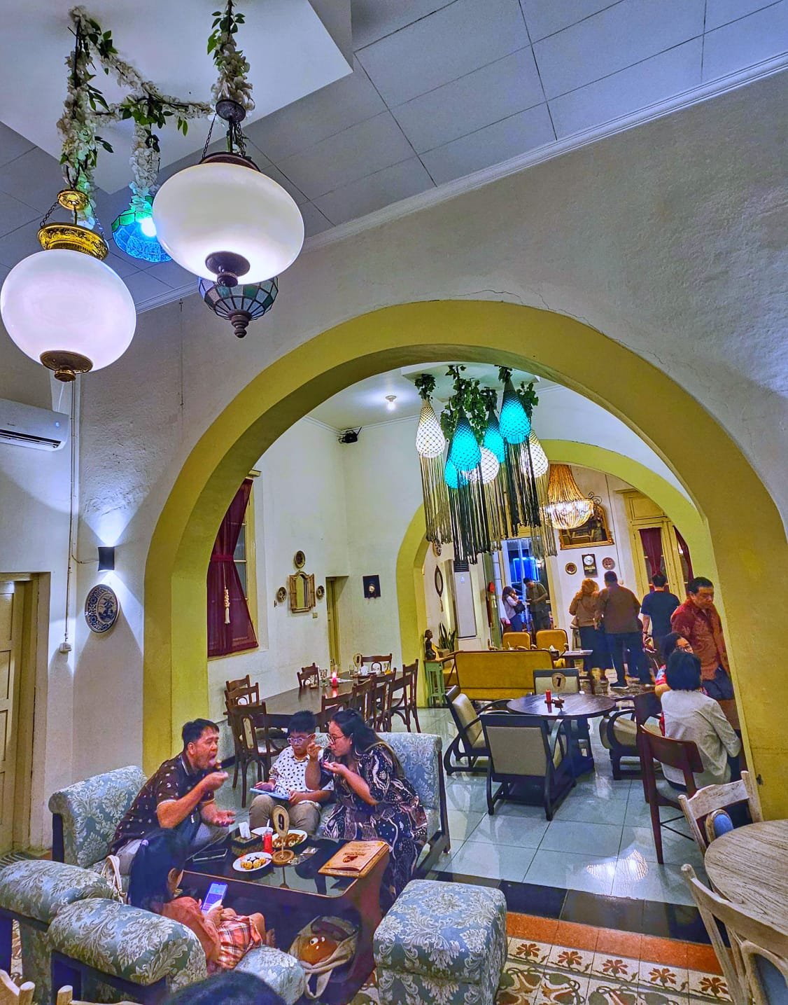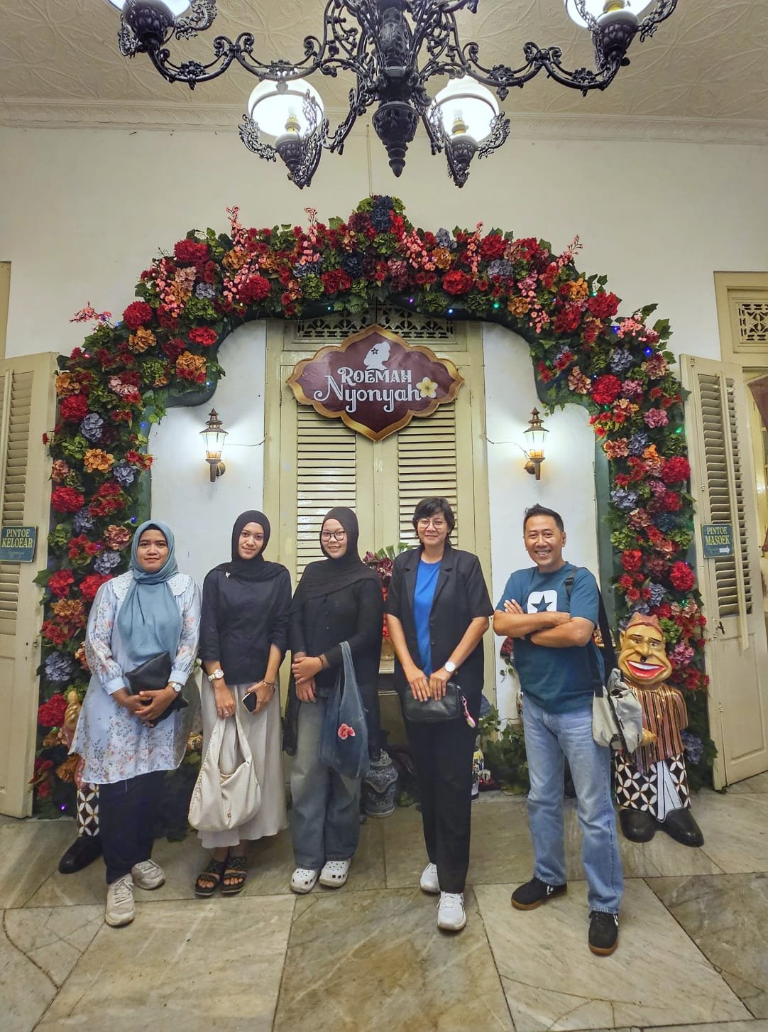 Kami sempat berkeliling, dan serius… hampir setiap sudut Roemah Nyonyah itu estetik banget. Interior bercorak heritage, sentuhan klasik Jawa, dekor yang detail — semuanya Instagramable tanpa perlu banyak effort.